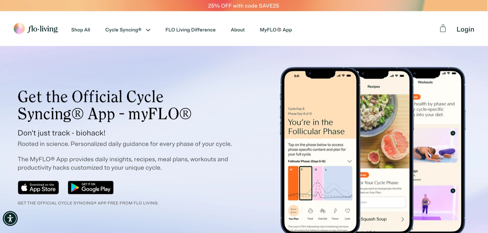 MyFlo is the official app of Alisa Vitti's FloLiving methodology, the source of the "cycle syncing" term as commonly used.