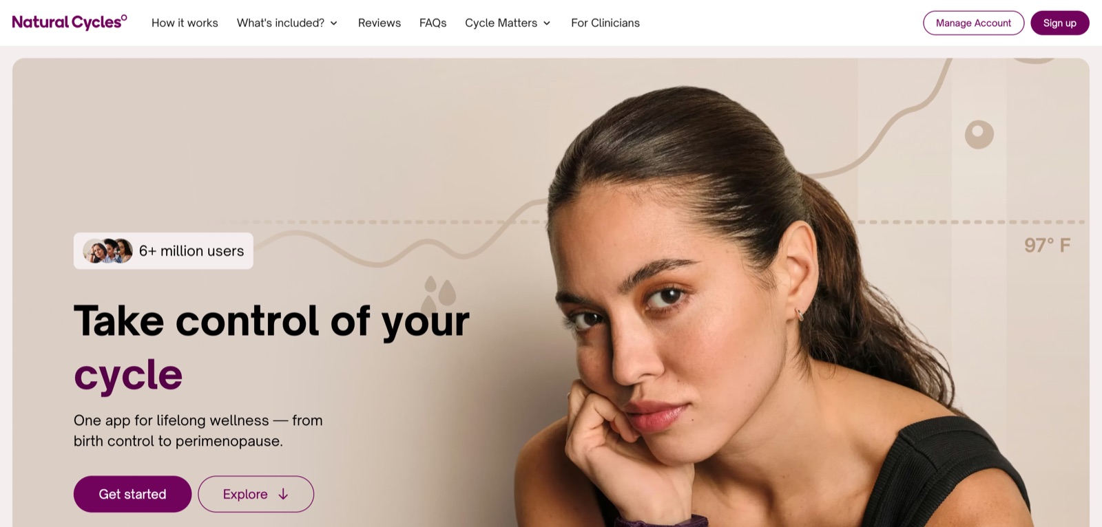 Natural Cycles homepage. Source: naturalcycles.com, captured 2026-04-29.